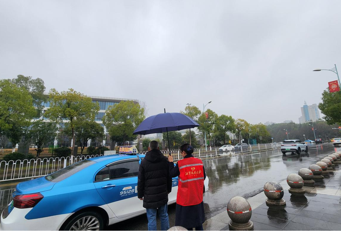 三月的天氣陰晴不定,一場急雨突然而至。會務員小陳注意到一位辦事群眾在門口張望,了解到群眾需求后,小陳立即拿起便民傘迎上去:“我送您到馬路邊!”短短幾十米路,傘面始終向群眾傾斜。這樣的小場景,在活動日頻頻上演。市民之家提前備好雨傘、輪椅等物資,保安、會務團隊主動護送未帶傘的群眾到馬路邊坐車、到公交站等車,衣衫濕透的背影成了雨天最動人的風景。