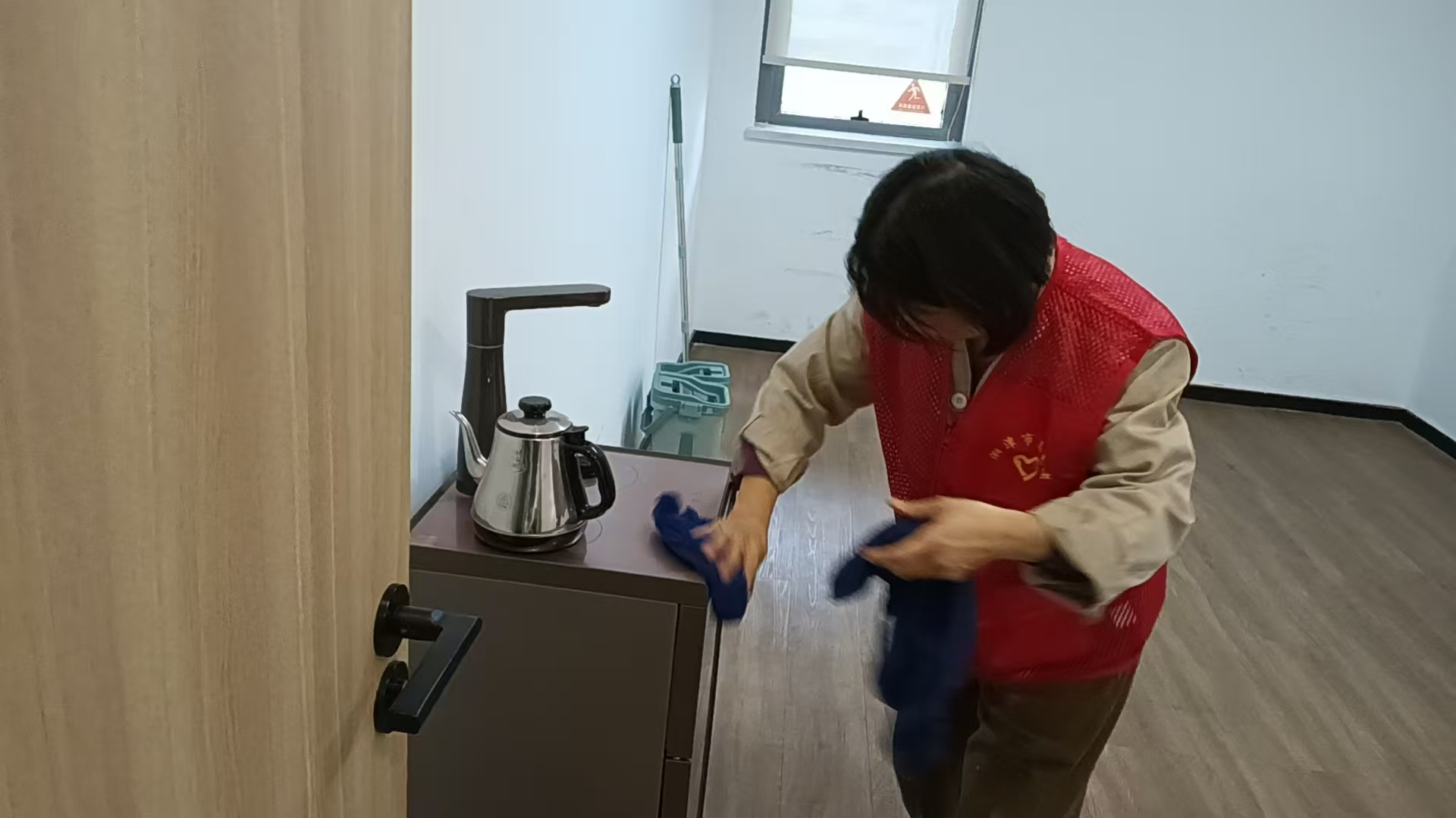 不僅服務群眾“看得見”,后勤保障的“幕后雷鋒”同樣在行動。保潔部全員上陣,對空置辦公用房展開“大掃除”:清理積灰、消毒地面、整理廢棄文件……“這些房間雖暫時閑置,但保持整潔是對公共資源的尊重,也是為將來入駐的同事和群眾提供舒適環(huán)境!北嵵鞴芡踅阋贿叢潦么芭_一邊說道。